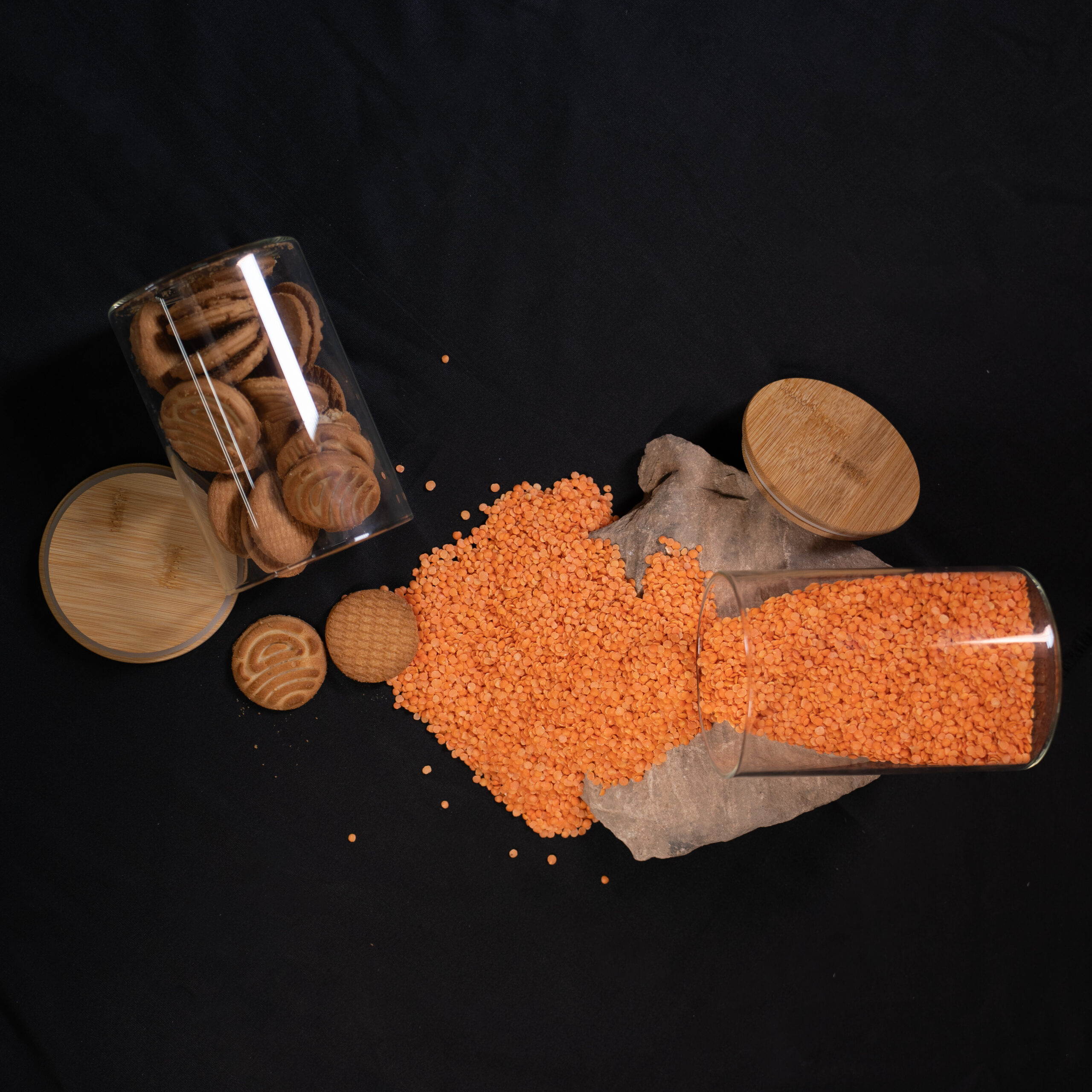 Borosilicate Glass Storage Jar with Wooden Lid (2 Pcs)