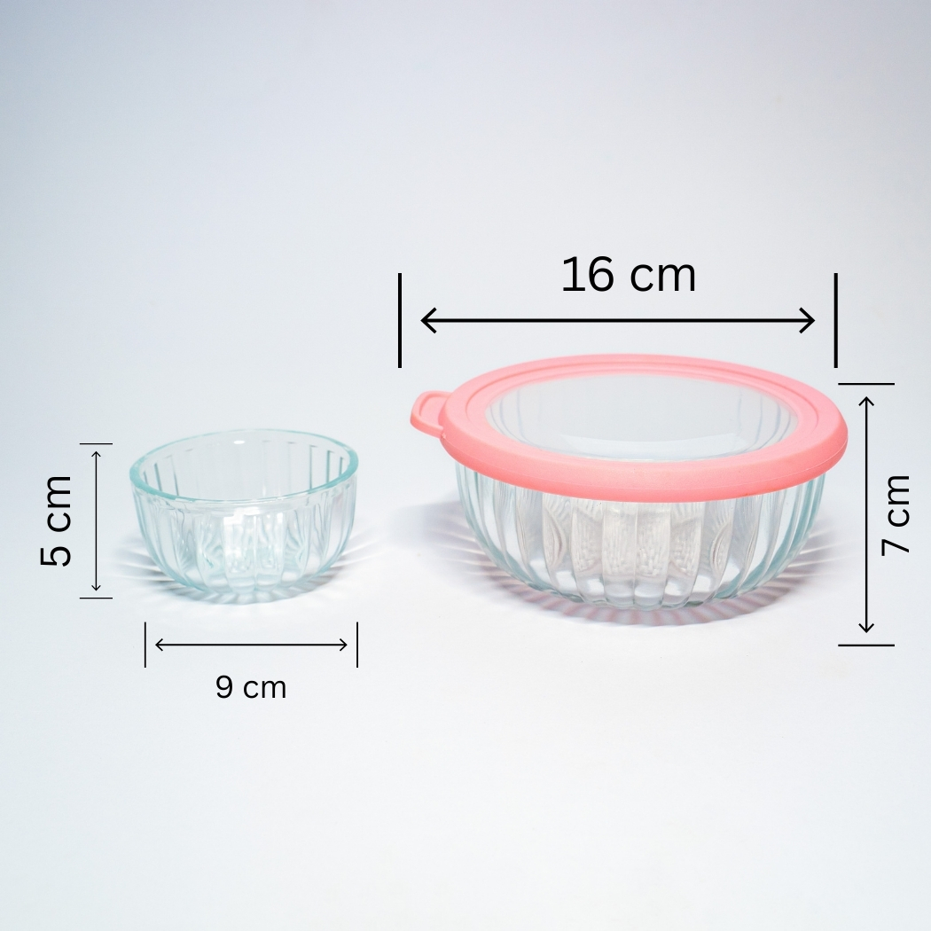 Designer Airtight Container Glass Bowl with Lid & Six Small Bowls