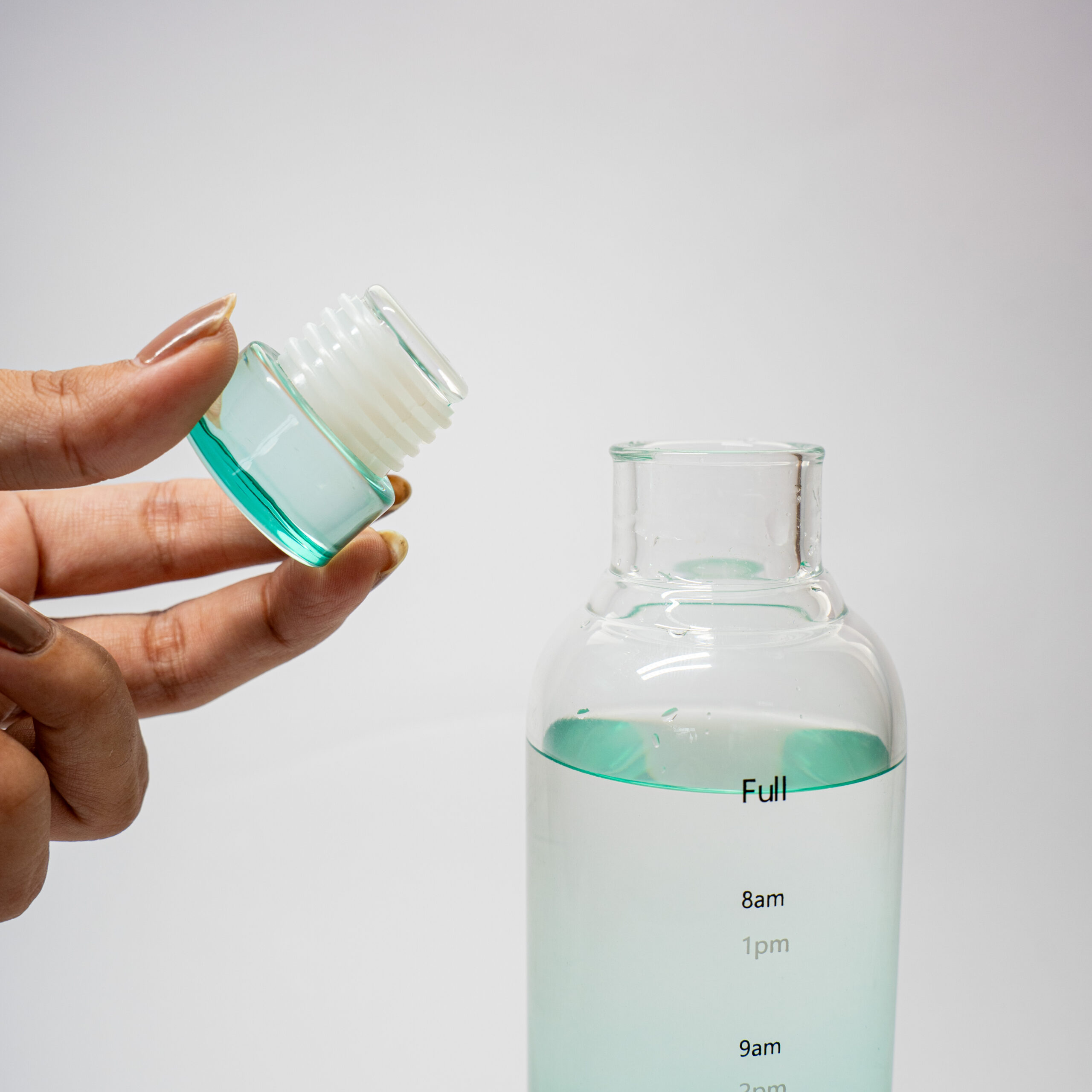 - Strong borosilicate glass bottle with leak-proof glass lid for safe carrying.